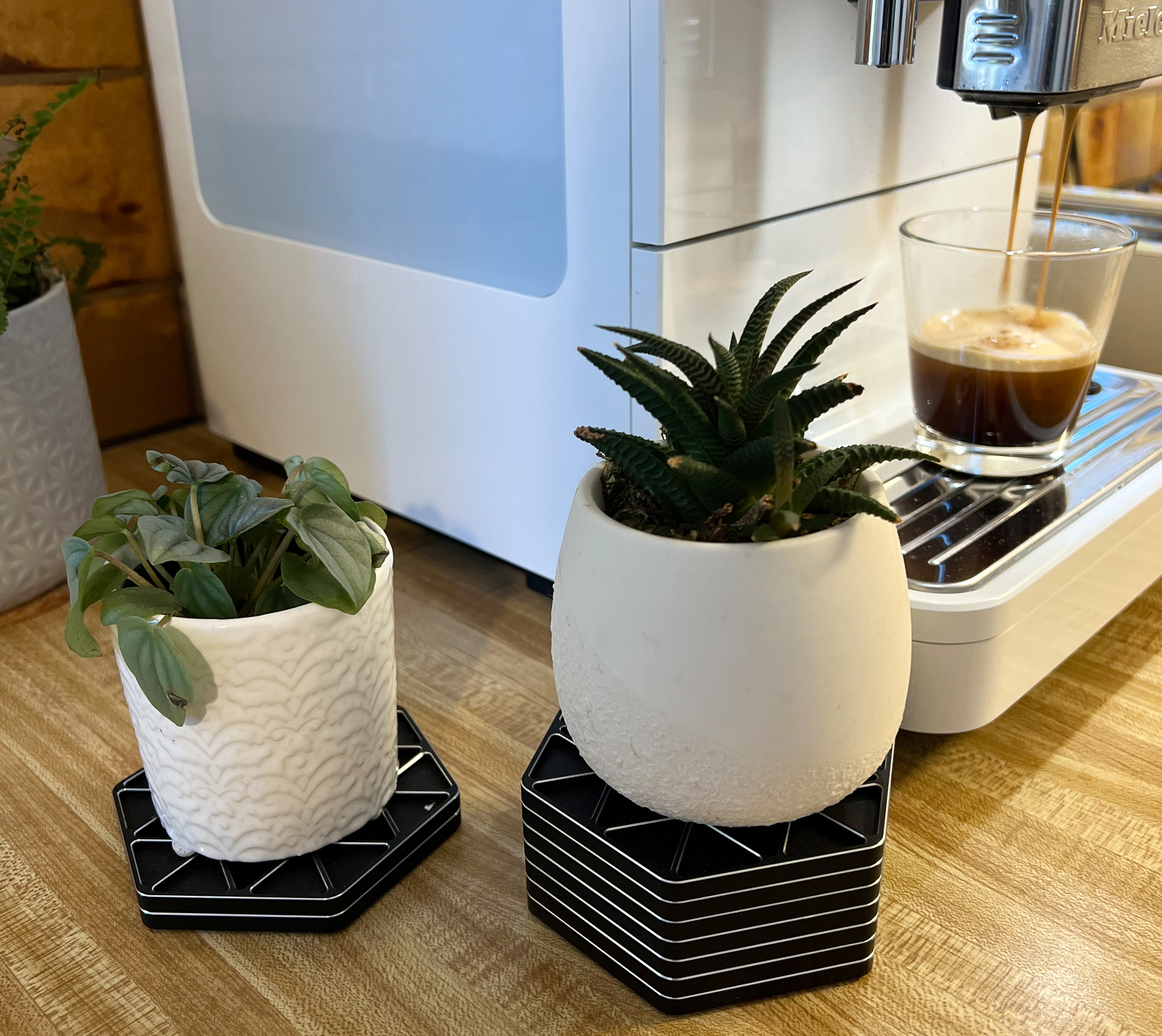The Isogrid Coaster Mark 1 features a self-interlock stacking system by seamlessly aligning with one another.