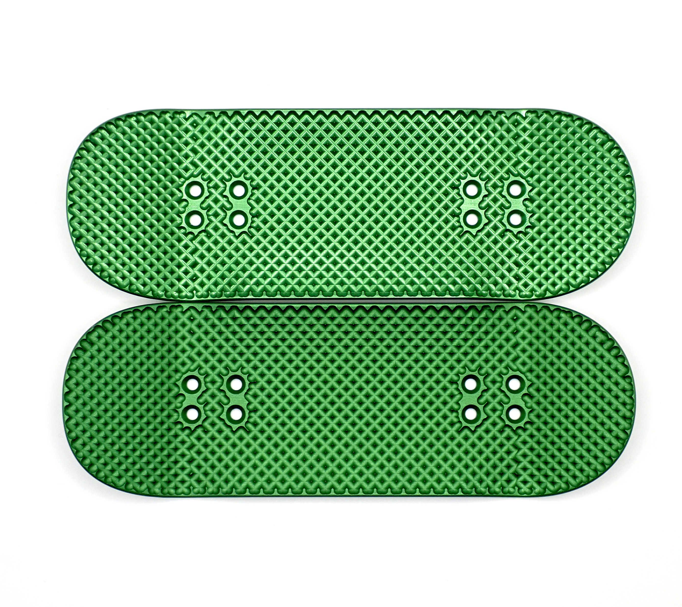 I 3D machine these boards out of solid 6061 aluminum metal plates, then sandblast them for a textured surface finish before sending to be anodized.