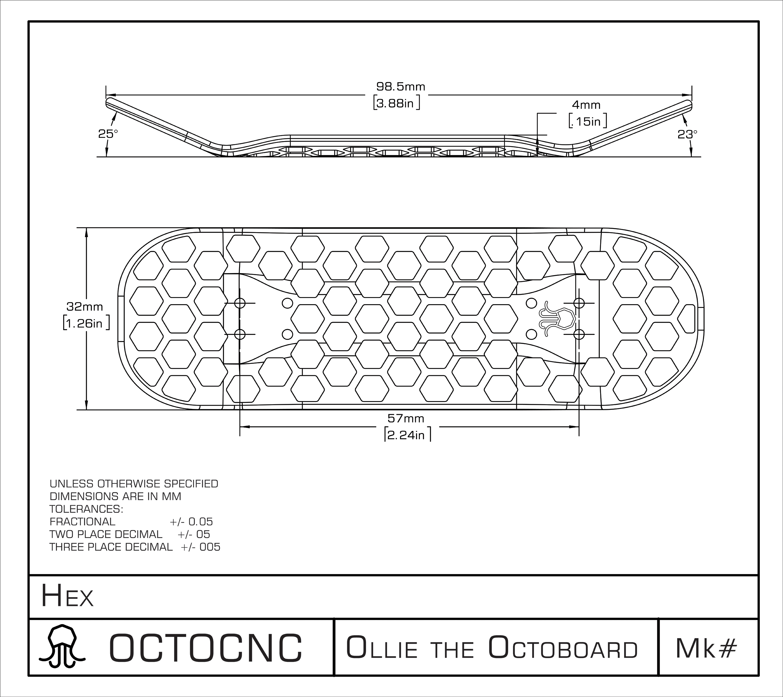 Bottom of deck is engraved with the Octocnc logo and Mark #.