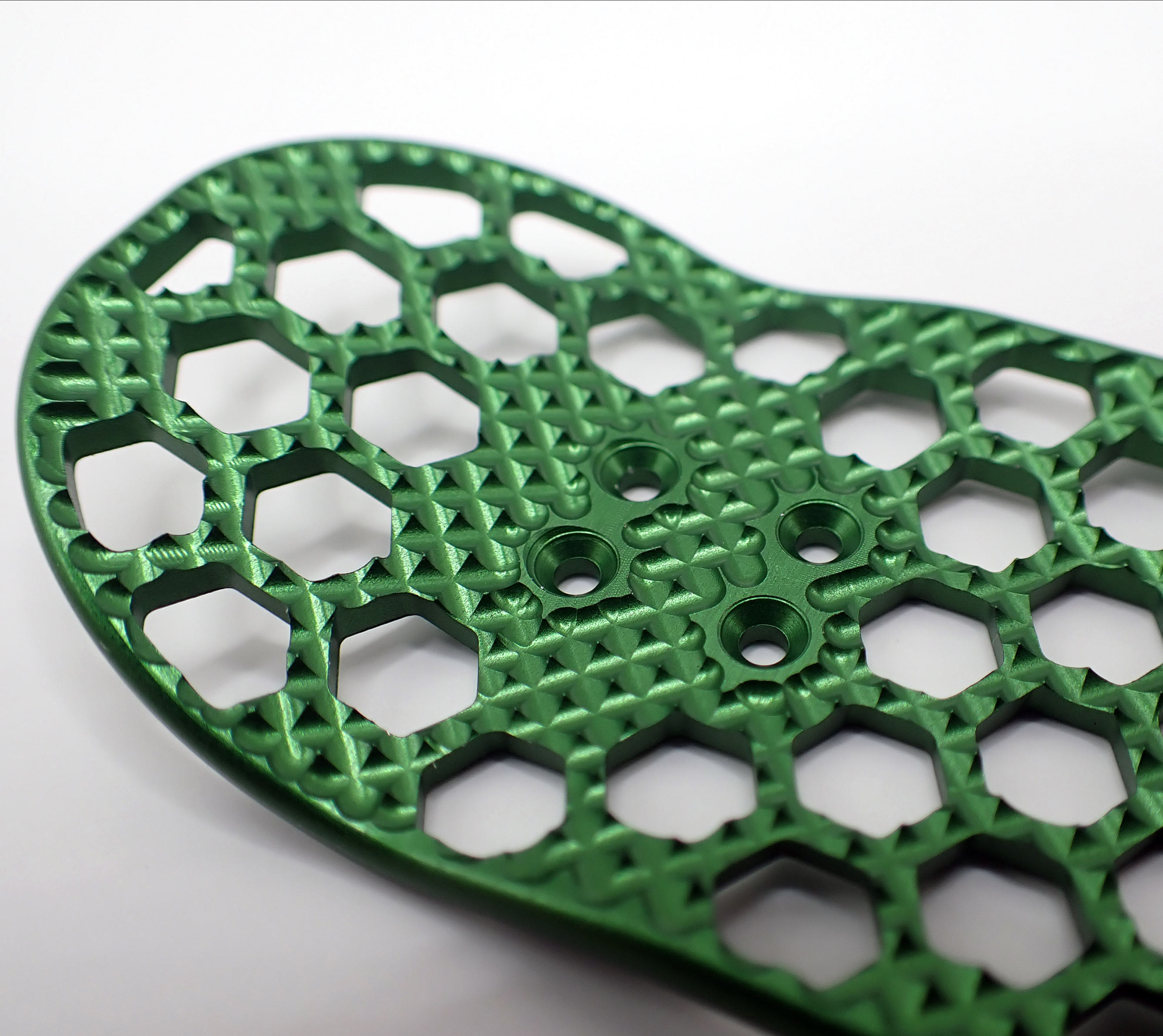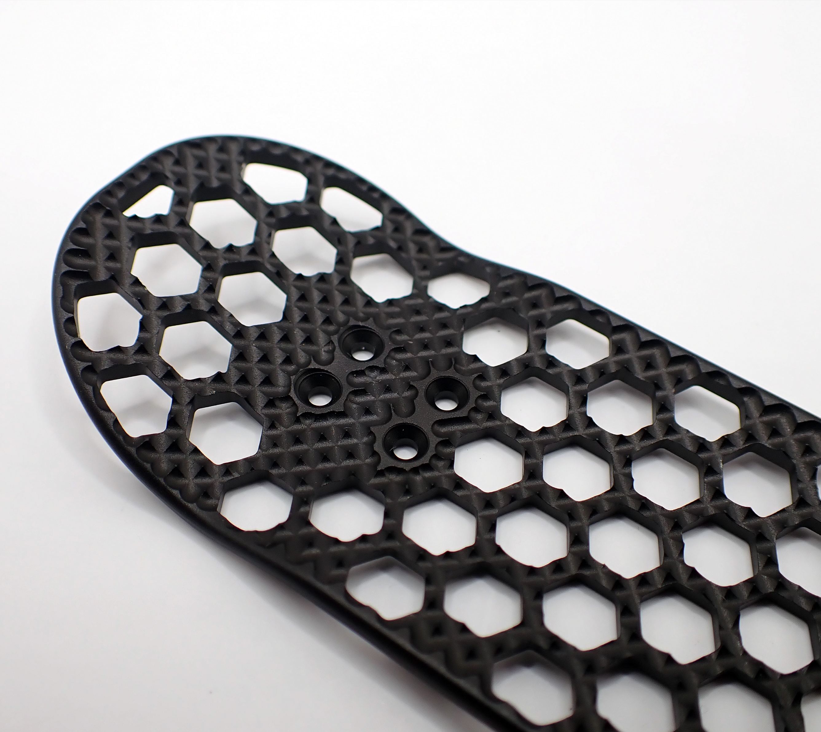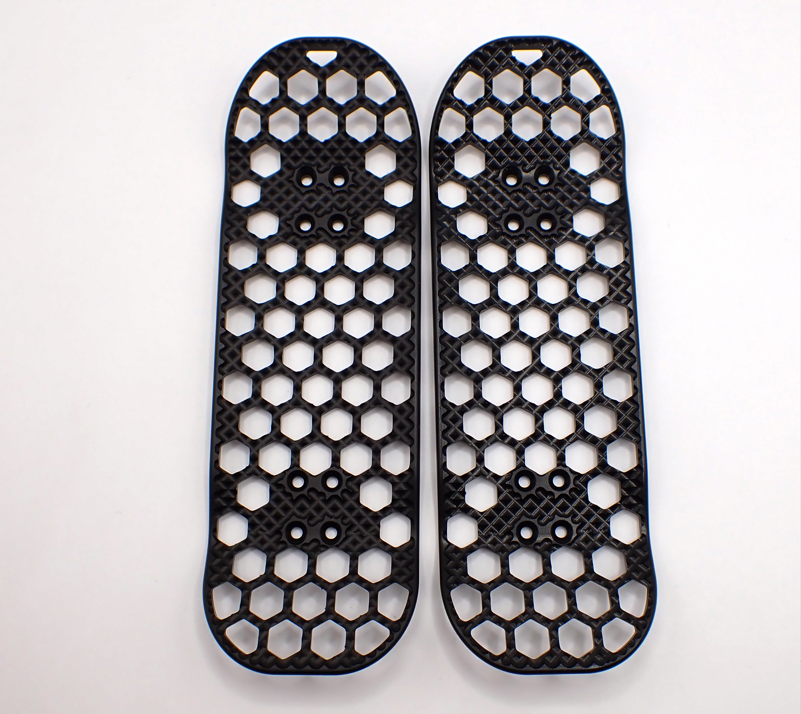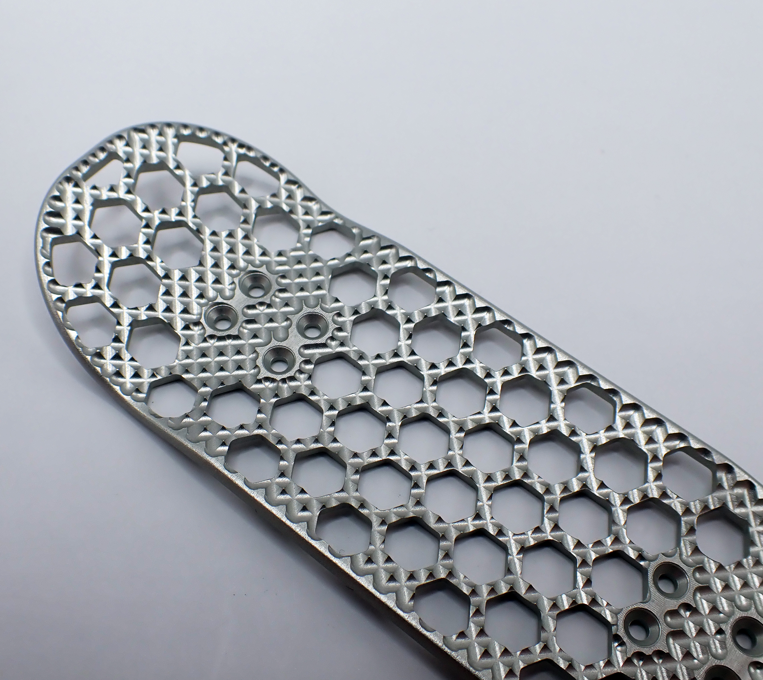 This aerospace inspired fingerboard uses a honeycomb structure (hexagonal) to reduce the weight while retaining structural strength.