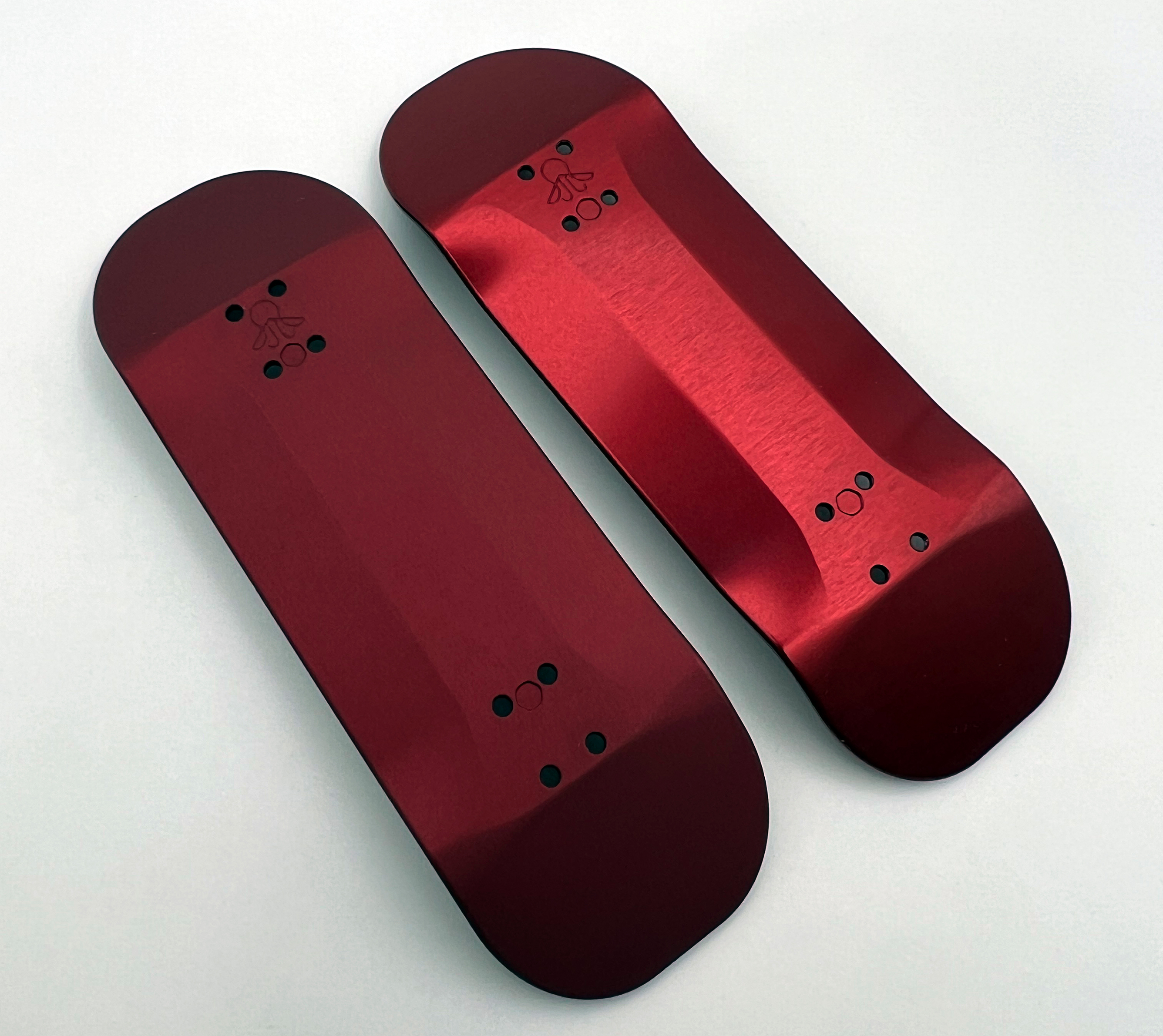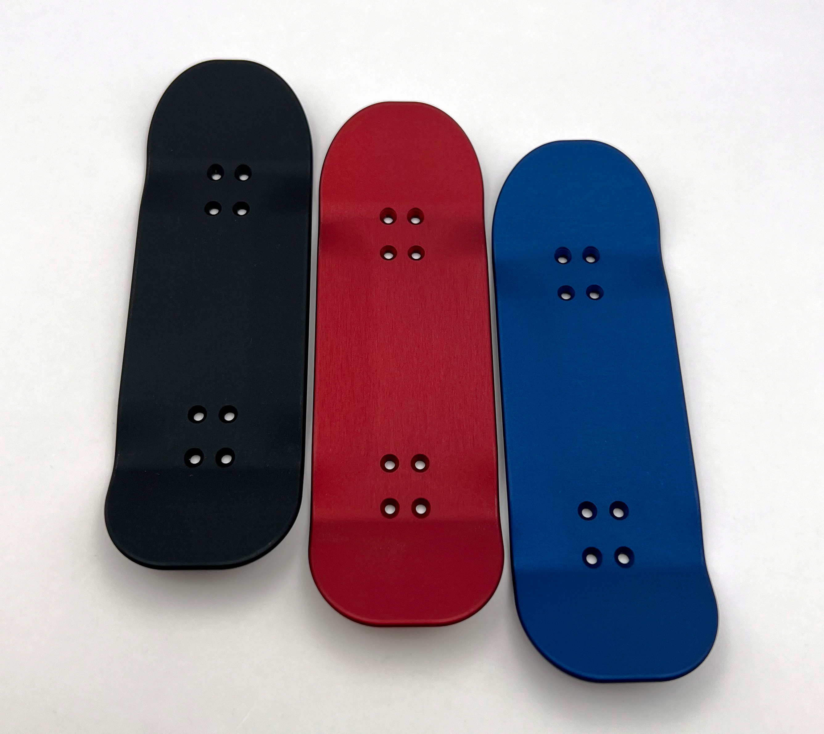 I 3D CNC machine these decks out of solid 6061 aluminum plates, then manually texture the surface by either sandblasting or polish them. Changing the surface finish yields a different finish color tone after anodizing.