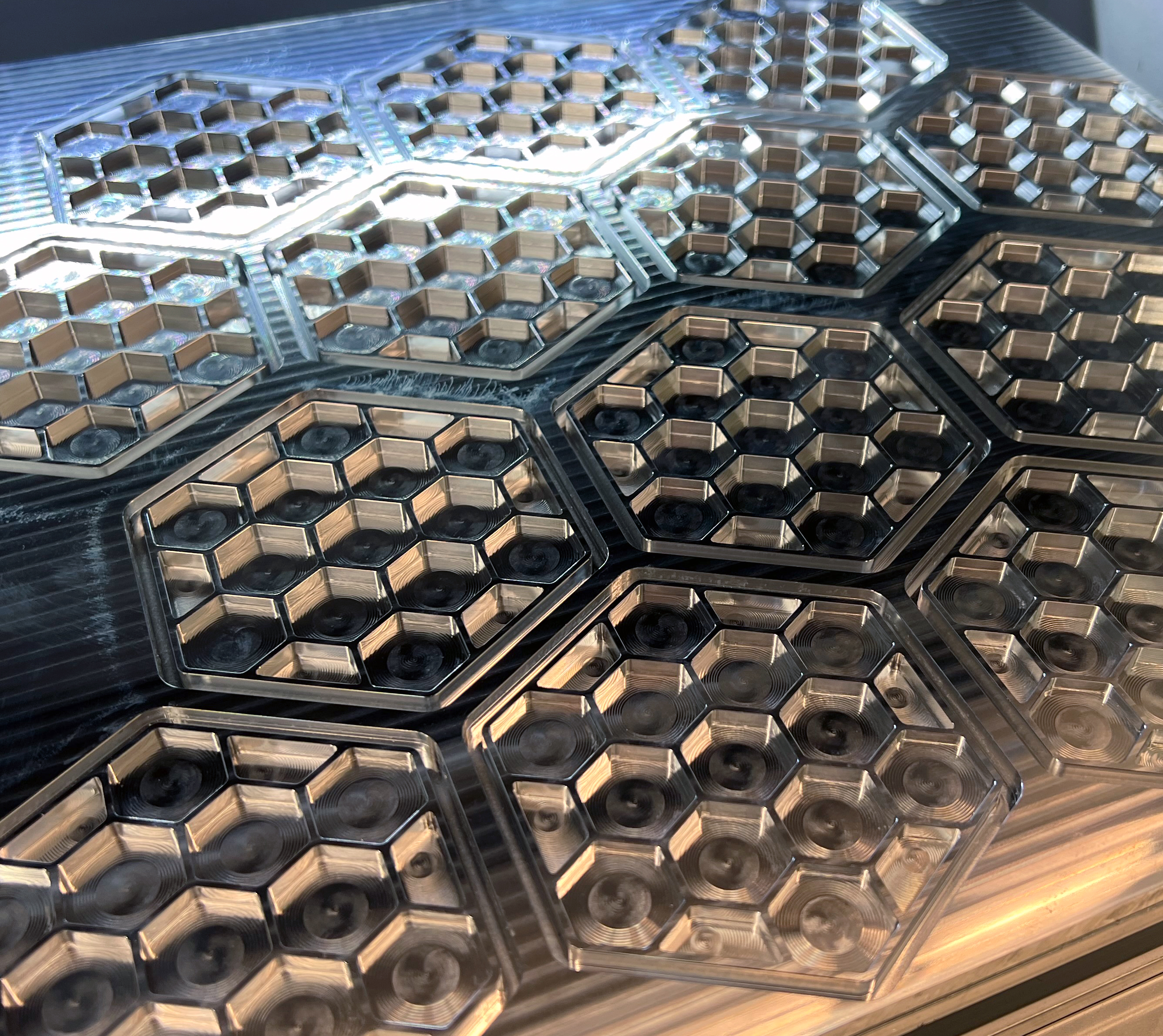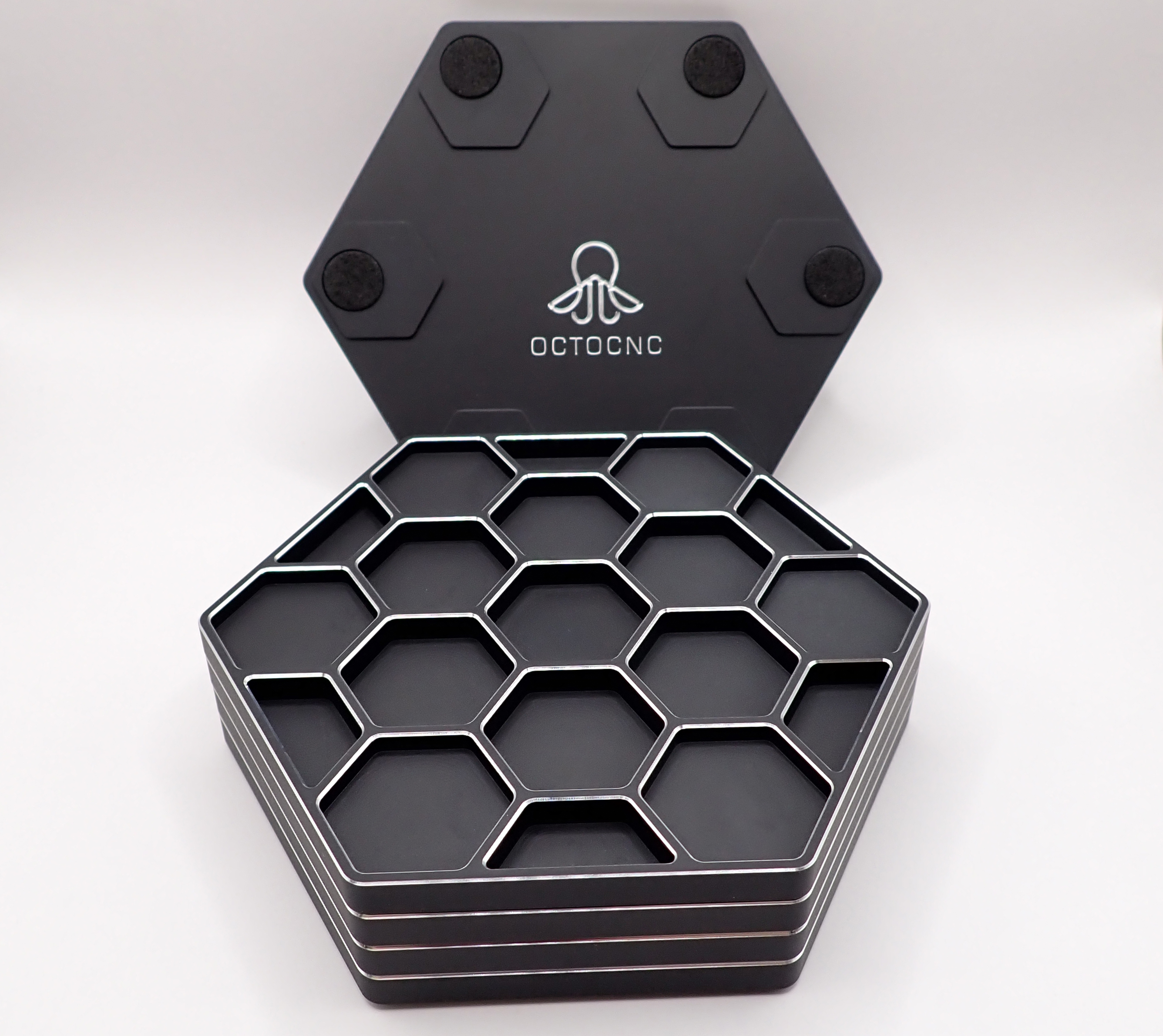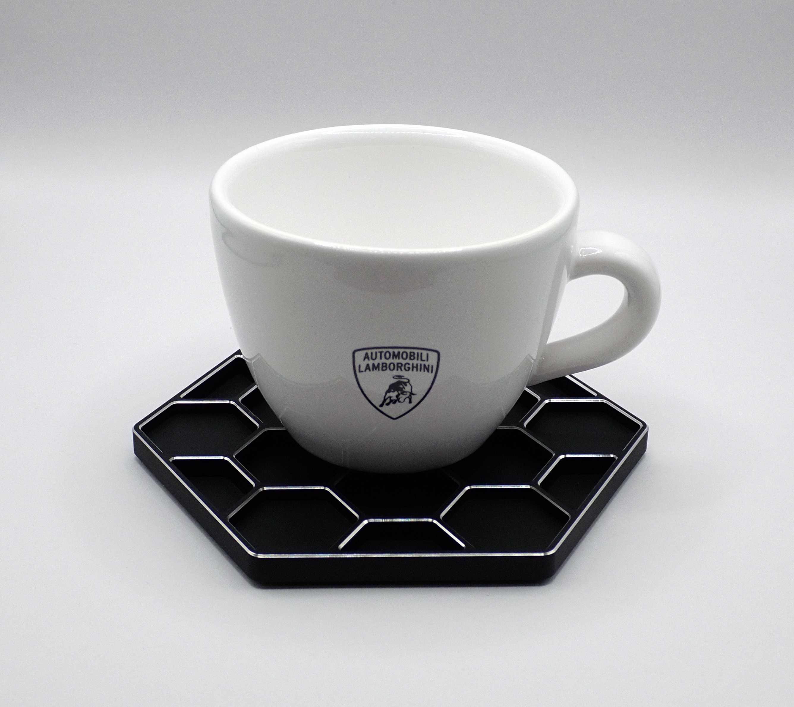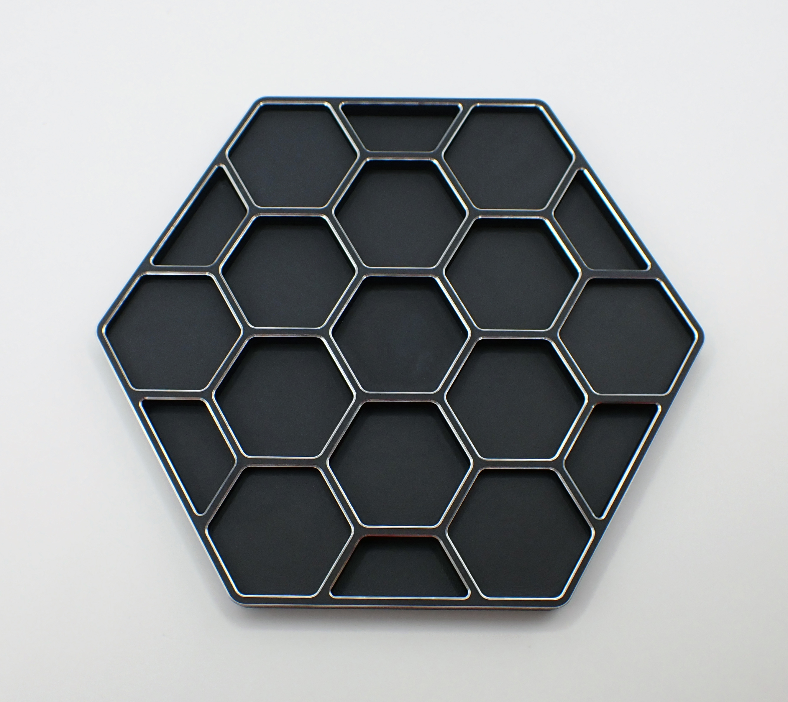 This aerospace-inspired coaster employs an honeycomb hexagonal structure which helps with weight reduction while maintaining its overall strength.