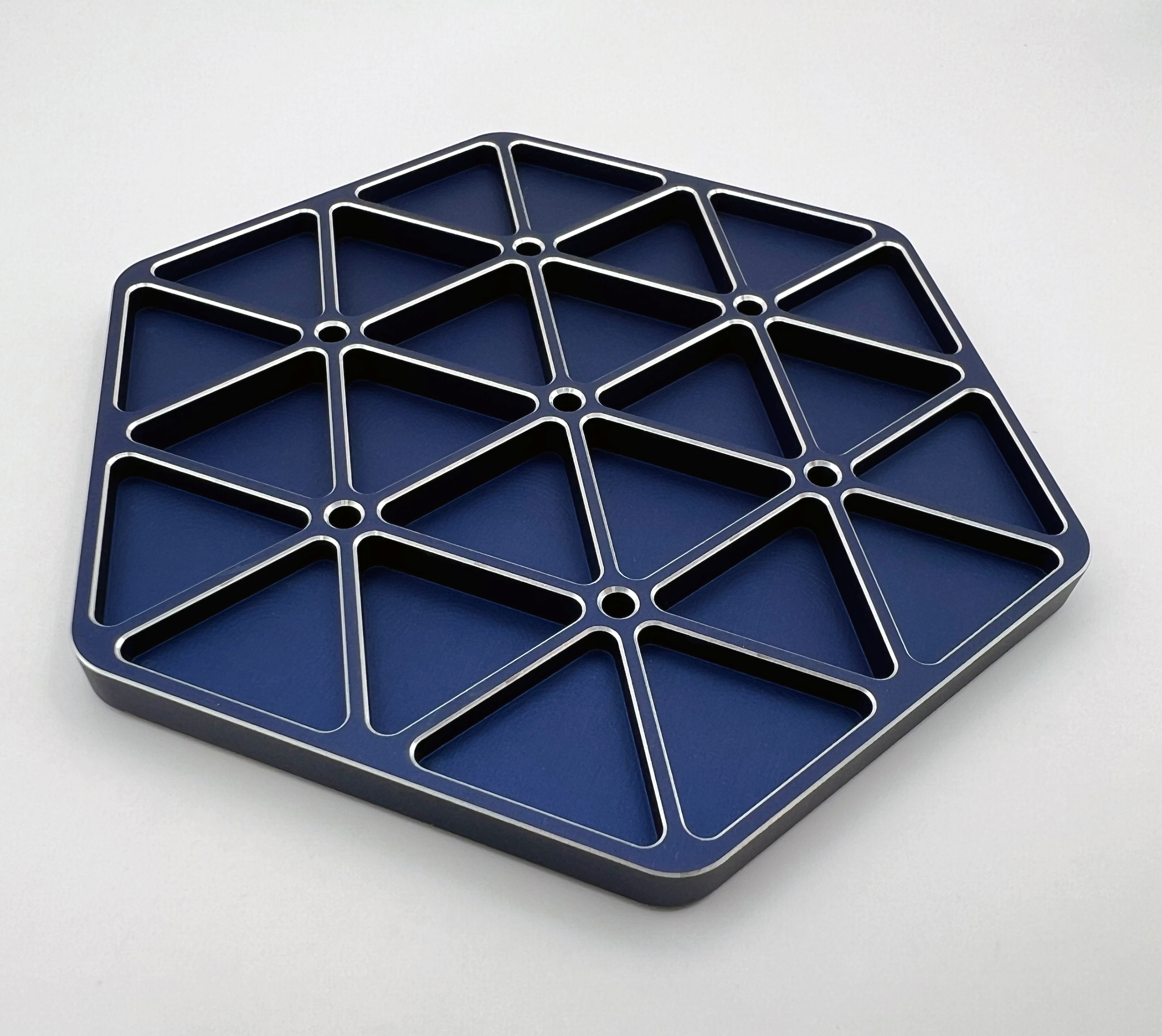 This aerospace-inspired coaster employs an isogrid structure which helps with weight reduction while maintaining its overall strength.